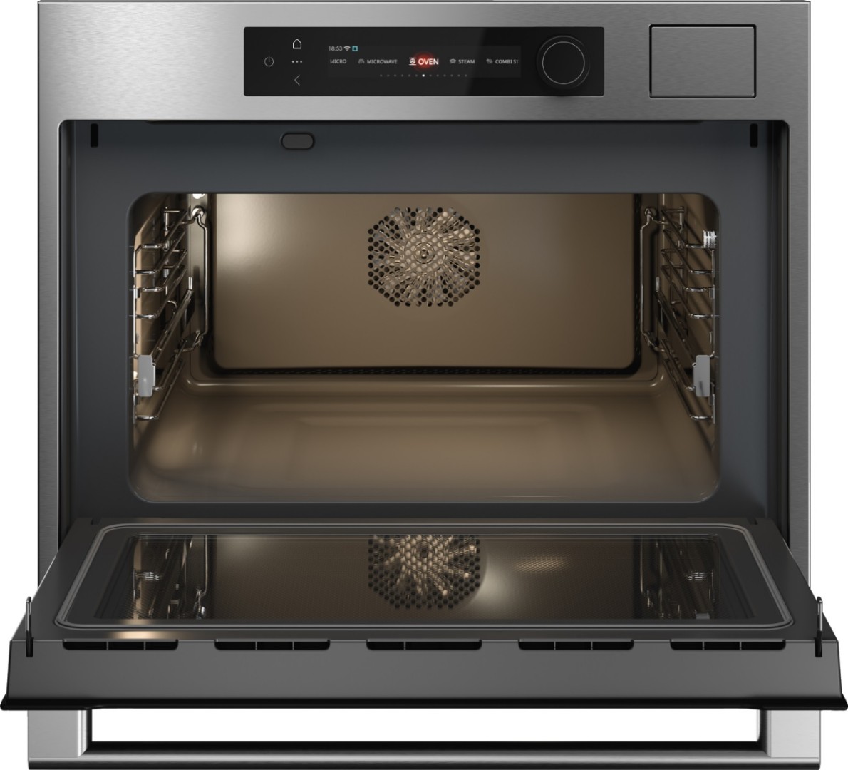 Конструкция дверцы с применением трех стекол позволяет снизить температуру фронтальной поверхности до минимума. Все это снижает потребление электроэнергии и делает приготовление полностью безопасным.